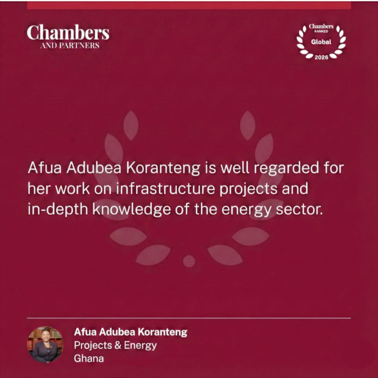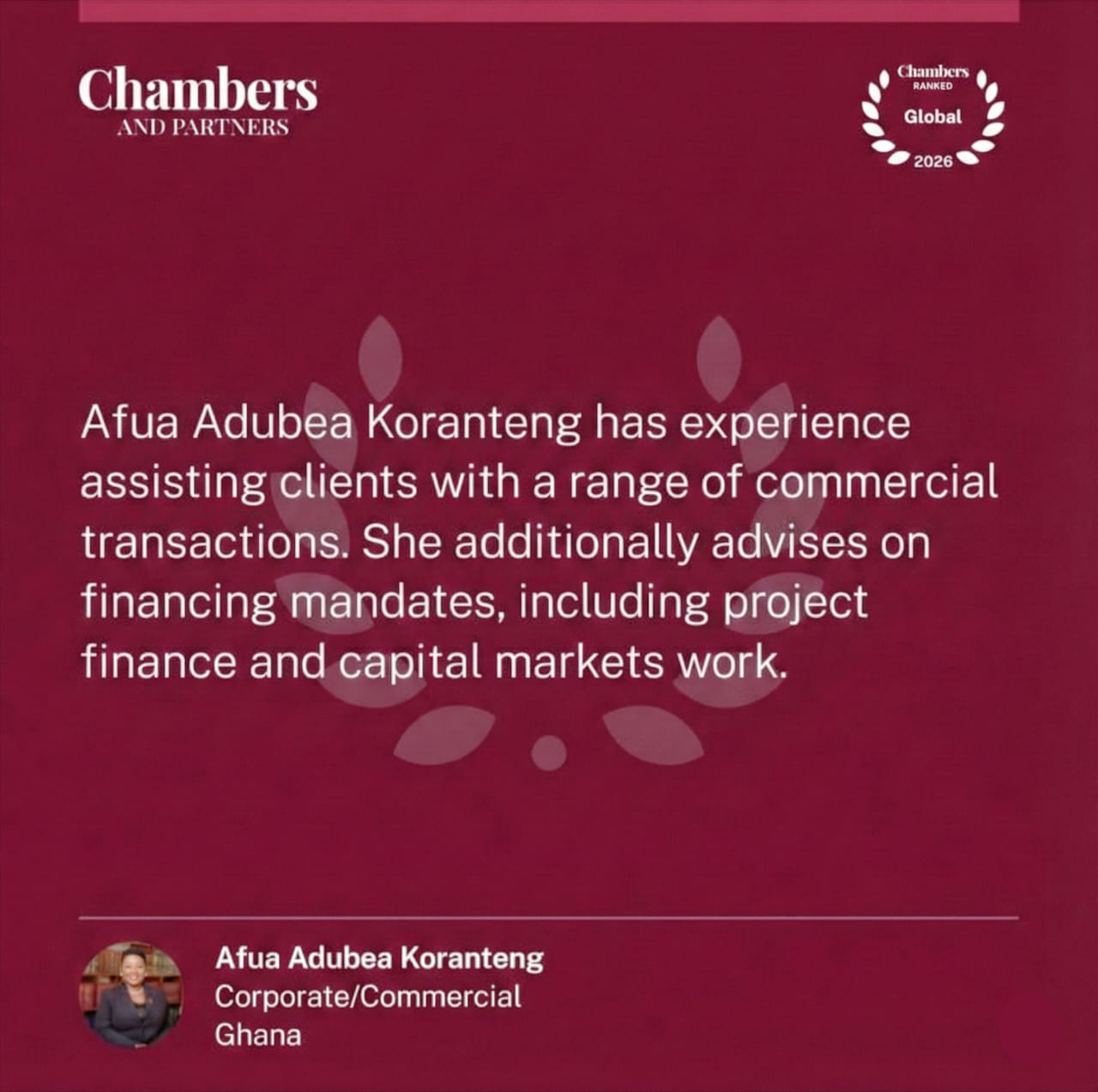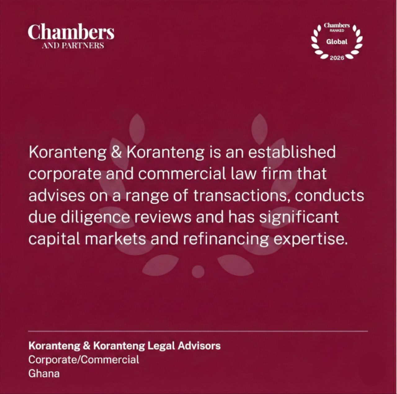 Koranteng & Koranteng Legal Advisors has been ranked in the Chambers Global 2026 Guide